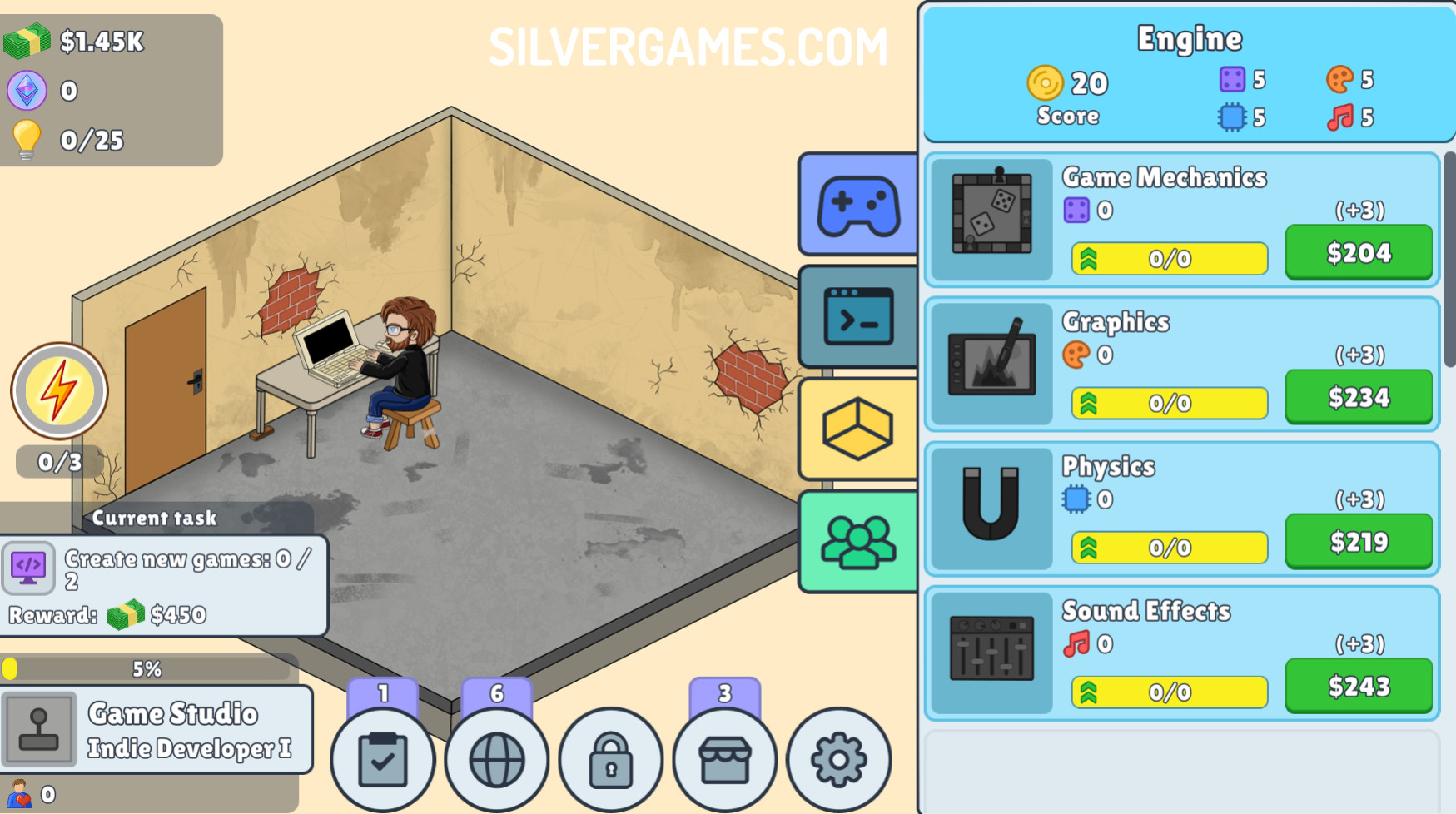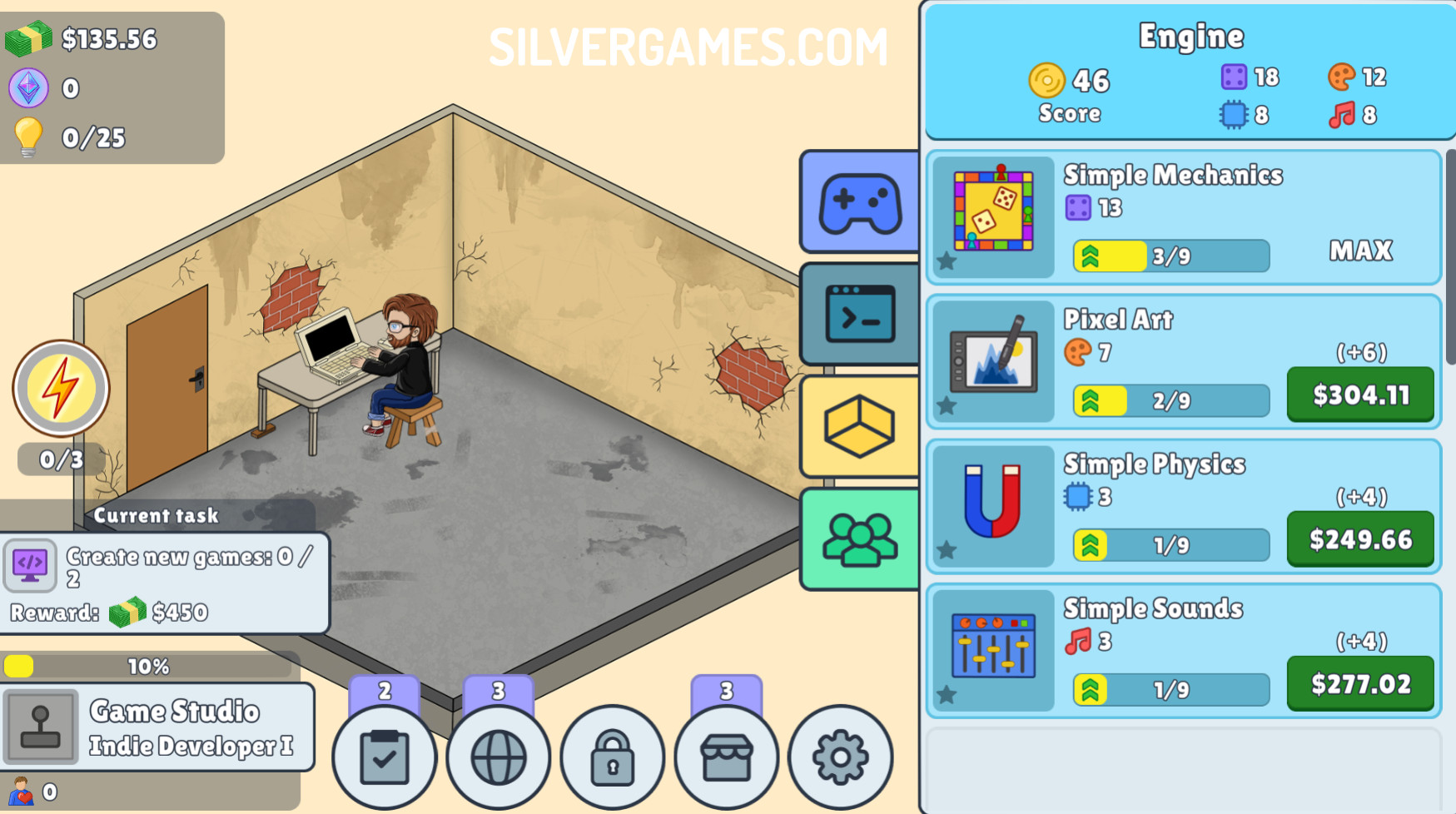 Your games generate income even while you’re offline, so every time you return, you’ll have resources to grow faster. But efficiency is key: do you spend your profits on marketing, better developers, or expanding your studio space? The right balance will help you dominate the charts. As you climb higher, unlock achievements, research upgrades, and quirky secrets that parody the gaming industry. Compete on leaderboards, chase milestones, and see if you have what it takes to become the ultimate game tycoon. Have fun with Idle Game Dev Simulator, a free online game on Silvergames.com!