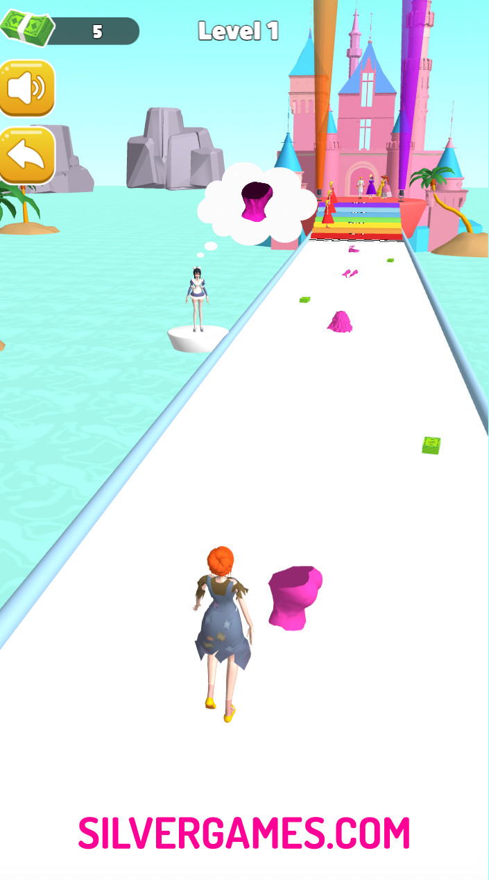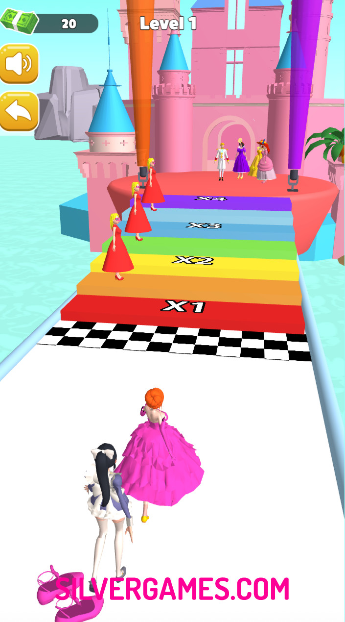 Princess Run 3D to niekończący się runner, w którym prowadzisz księżniczkę przez pełne przeszkód ścieżki, zbierając po drodze monety i power-upy. Twoim celem jest biec tak długo, jak to możliwe, unikając przeszkód, pułapek i ruchomych przeszkód. Przesuń palcem w lewo lub w prawo, aby zmienić pas ruchu, przesuń palcem w górę, aby przeskoczyć nad przeszkodami, i przesuń palcem w dół, aby prześlizgnąć się pod niskimi obiektami. Monety rozrzucone wzdłuż toru można zbierać, aby odblokować nowe stroje, akcesoria lub ulepszenia, które poprawią twój bieg.