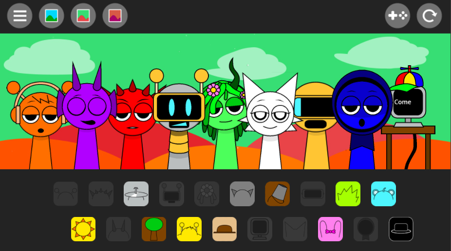 Sprunki Music Beats là một trò chơi nhịp điệu vui nhộn và sáng tạo, mang đến một làn gió ma quái cho việc sáng tác nhạc! Trong trò chơi kỳ quặc này, bạn có thể thử nghiệm với vô số âm thanh, nhịp điệu và giai điệu, cho phép bạn tạo ra những giai điệu ma mị, hấp dẫn của riêng mình. Mỗi nhân vật trong trò chơi đều có một yếu tố âm nhạc đặc biệt, và bạn cũng có thể tùy chỉnh diện mạo của họ để phù hợp với phong cách của mình. Khi bạn kết hợp các âm thanh khác nhau, bạn sẽ mở khóa những nhịp điệu và giai điệu mới, cho phép trí tưởng tượng âm nhạc của bạn bay cao.